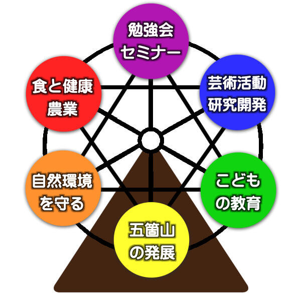 - 芸術や研究の施設を整える。勉強会やセミナーなどのイベントを行う。広報活動をする。CE-5コンタクトもする。
